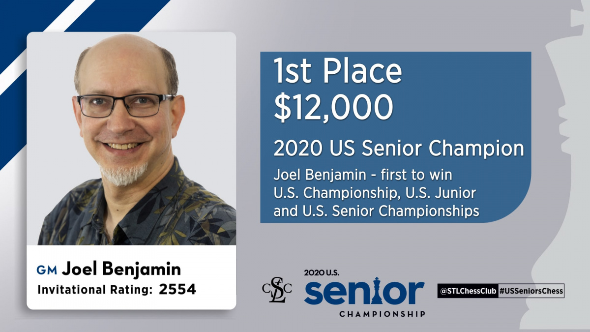 The 2020 U.S. Senior Championship is an elite national championship event, featuring 10 of the strongest chess players in America over the age of 50. Over the course of 9 rounds, these competitors will battle for $50,000 in prize money and the title of 2020 U.S. Senior Chess Champion.