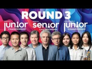 view all news, press, & insights RECAP | 2024 U.S. Junior & U.S. Senior Championships: Round 3 Table of contents July 18 2024 Invitational Recap Kostya Kavutskiy recaps Day 3 of the 2024 U.S. Junior & U.S. Senior Championships. Taking place at the World Chess Hall of Fame in Saint Louis, the U.S. Junior, U.S. Senior, and U.S. Girls’ Junior Championships determine three national champions. Each classical round robin features ten players (listed below). 2024.07.18 https://USChessChamps.com https://twitter.com/stlchessclub https://twitch.tv/stlchessclub https://www.instagram.com/stlchessclub https://www.facebook.com/stlchessclub ROUND 3 | 120 Min. Incr. 30 Sec. Christopher Yoo (2) vs. Andy Woodward (1.5) Justin Wang (2) vs. Nicholas Ladan Arthur Guo (0.5) vs. Andrew Hong (1) Balaji Daggupati (1) vs. Jason Liang (0.5) Jason Wang (0.5) vs. Brewington Hardaway (1) ROUND 3 | 120 Min. Incr. 30 Sec. Vladimir Akopian (2) vs. Larry Christiansen (1.5) Melik Khachiyan (1) vs. Alex Shabalov (1) Igor Novikov (0.5) vs. Gregory Kaidanov (1) Douglas Root (0.5) vs. Julio Becerra (1) Joel Benjamin (0.5) vs. Jesse Kraai (1) ROUND 3 | 120 Min. Incr. 30 Sec. Chloe Gaw (1.5) vs. Jasmine Su (1.5) Zoey Tang (1.5) vs. Yassamin Ehsani (1) Alice Lee (0.5) vs. Rose Atwell (1.5) Megan Paragua (0.5) vs. Iris Mou (1.5) Omya Vidyarthi (0.5) vs. Rachael Li Related CHESS NEWS prev next Invitational Recap POSTGAME FINAL: Magnus Plays His Best Chess on Clutch Day! | #ChampionsShowdown Read the Article Invitational Recap POSTGAME DAY 2: Magnus Turns on the Afterburner | #ChampionsShowdown Read the Article Invitational Recap POSTGAME DAY 1: Gukesh Smashes Fabi! | #ChampionsShowdown Read the Article Invitational Recap POSTGAME FINAL: Champions are Crowned! #USChessChamps Read the Article Invitational Recap POSTGAME ROUND 10: Wesley Pounces! Earns Chance Tomorrow #USChessChamps Read the Article Invitational Recap POSTGAME ROUND 9 | #USChessChamps Read the Article Invitational Recap POSTGAME ROUND 8: Aggressive Levon Trips Up Shankland #USChessChamps Read the Article Invitational Recap POSTGAME ROUND 7: Caruana’s BIG TIME Win Over Hans! #USChessChamps Read the Article Invitational Recap POSTGAME ROUND 6: Alice Lee and Anna Zatonskih Currently Tied For First! #USChessChamps Read the Article Invitational Recap POSTGAME ROUND 5: Tatev’s Spectacular Style Nets Second Win! #USChessChamps Read the Article